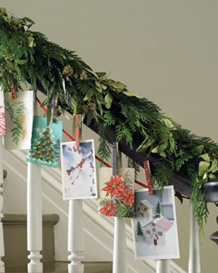 Did you all have a good Christmas? I had a great time opening presents with my siblings and stuffing my face with a delicious Christmas dinner prepared by my mom! As we were chit chatting, my mom mentioned that she always receives beautiful Christmas cards each year and she would love to display them around the house in some way. That conversation gave me the idea behind this post- what better way to keep up the holiday cheer than to display your cards around the house? Here are a few options that I discovered on pinterest!
