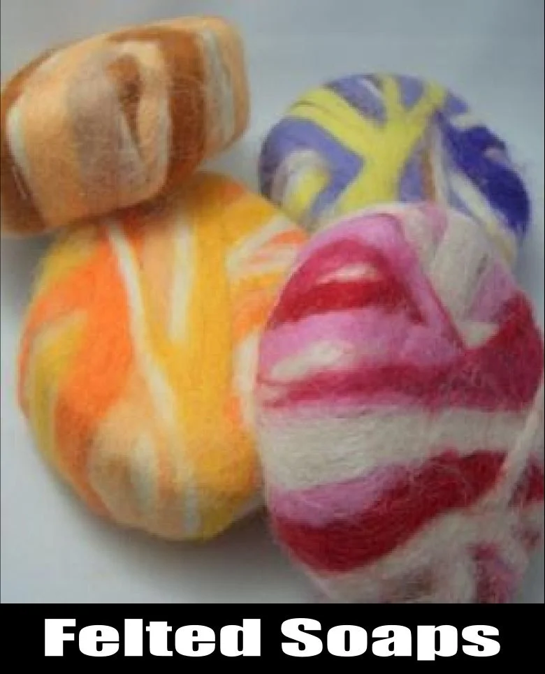 Felted soap is made by wrapping the soap in wool roving. The combination of hot water and friction results in the wool covering shrinking and forming a tight cover for the soap. This cover is like a soft colorful washcloth. You wet the soap and use it. That's all. It lathers up just like it should.