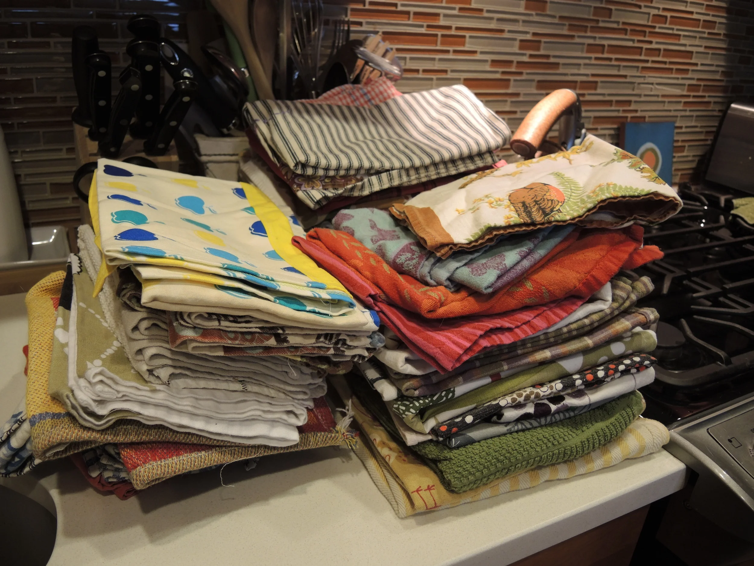 What's a tea towel? Traditionally it was a towel to place over a tray to lay out your tea and tea time accessories. Of course popular in England and Ireland. I am not British but I am of Irish descent. If you ask me how I started making these utilitarian cloths I couldn't tell you. I also am not a tea drinker, but I am married to one and I am a fabric lover. Most Americans don't know what a tea towel is. Although most do use them every day. We call them dish towels. My family uses them all the time. I couldn't believe when I opened up my cabinet to count how many I had. 48. Yes, 48! That's not including ones probably in the dirty laundry pile. We use them mainly for drying our hands, under the dish rack at the sink and for basket liners.