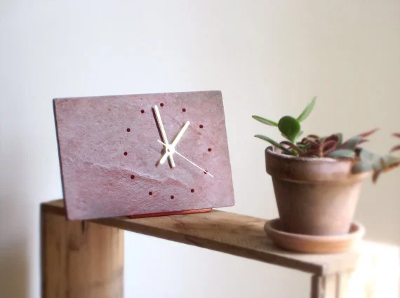 Clocks are a great shelfie addition because they offer a bit of nostalgia. With smartphones, clocks aren't really necessary anymore. But this piece is really equal parts art and function. SimplyNu created this design from salvaged slate and is also an Etsy NY Team member!