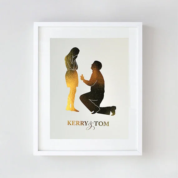 This custom gold foil silhouette is from one of my all time favorite Etsy shops Le Papier Studio. I love they modern approach to the classic silhouette art form. It's a wonderful gift for that newly engaged couple in your life!