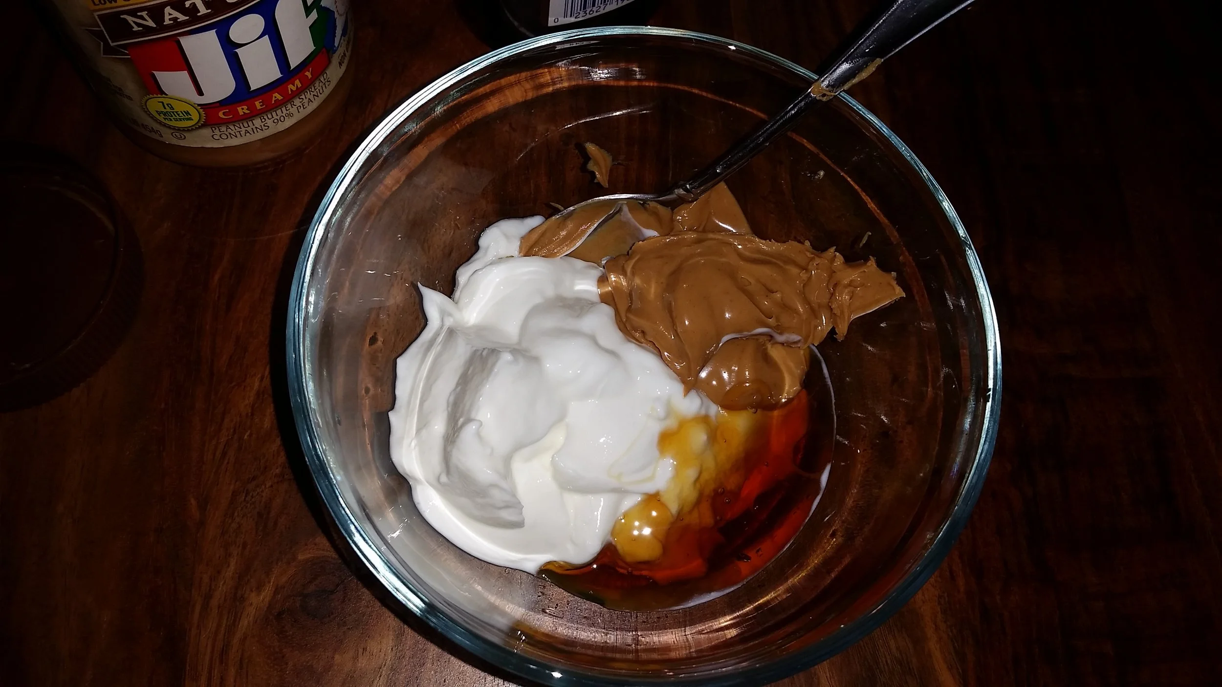You'll need a nice sturdy spoon to mix with, that peanut butter doesn't mellow out easily!