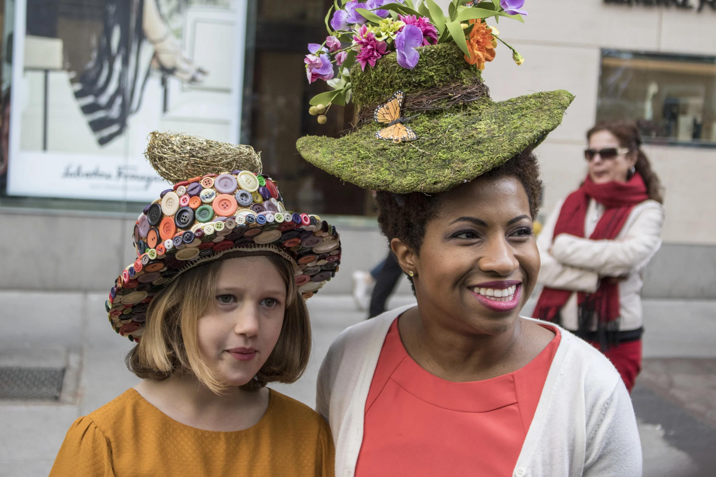 The Easter Bonnet Parade is a spectacle of locals and tourists donning spring themed hats. This beloved tradition marks the end of winter in NYC and dates back to the late 1800's. Today it attracts attention from local and national media including Time Out New York and WGSN. Junior Baby Hatter even bumped into Humans of New York! Being a hat family, we had to make an appearance to admire the extravagant headdresses. From butterflies to baskets to bunnies, here’s a roundup of the top 5 hat trends Junior Baby Hatter spotted parading down 5th Avenue.