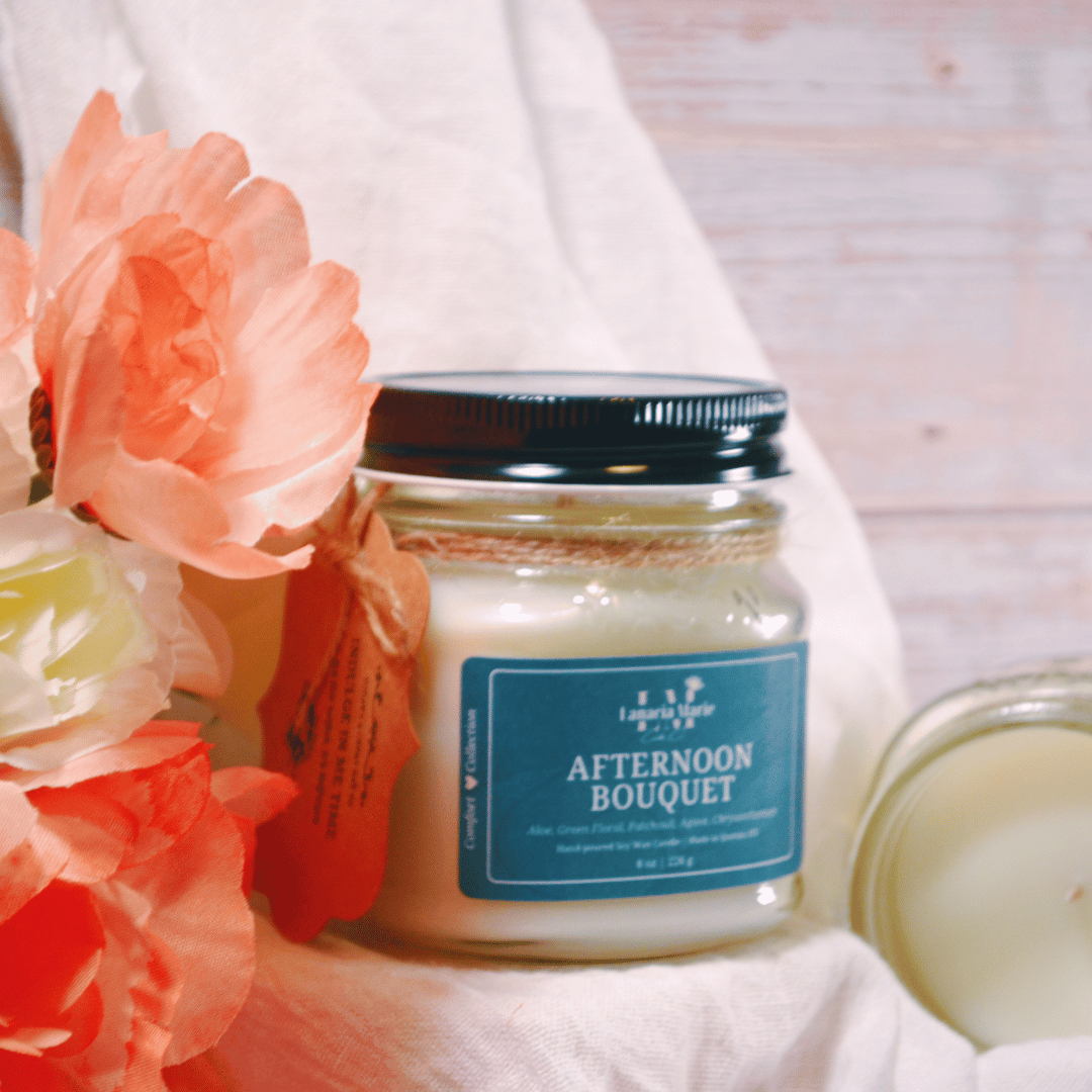 At Lanacia Marie Candle Co., we specialize in handcrafted soy candles, including our signature Afternoon Bouquet candle, which envelops you in the lushness of a floral garden in full bloom, perfect for those who cherish the essence of nature's most graceful aromas. Explore our collection on Etsy and elevate your ambiance today.