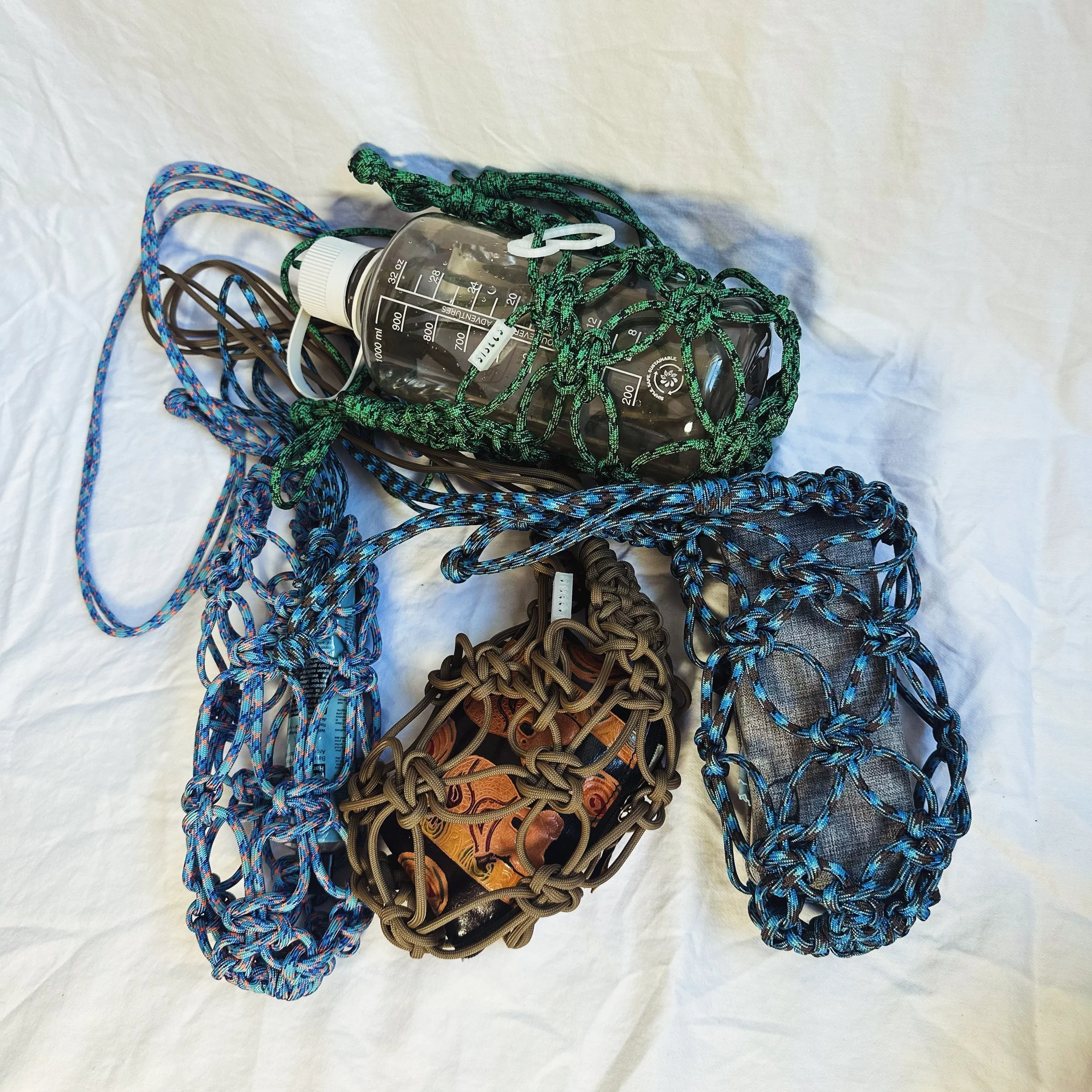 The SISEES Gaia water bottle sling is handmade and can keep you hydrated! Bring your water bottle or essentials (wallet, sunglasses, phone, keys) everywhere, day and night. Come explore and browse SISEES, an Asian-owned home and accessories brand, to find handmade crochet totes, paracord sling bags, rug tuft signs, cards, postcards, and prints with affirmations.