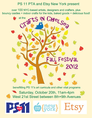 PS 11 and Etsy New York will occupy 21st Street between 8th and 9th Avenues in Manhattan, to bring you Crafts in Chelsea/PS 11 Fall Festival on October 20, 2012 from 11am to 4pm.