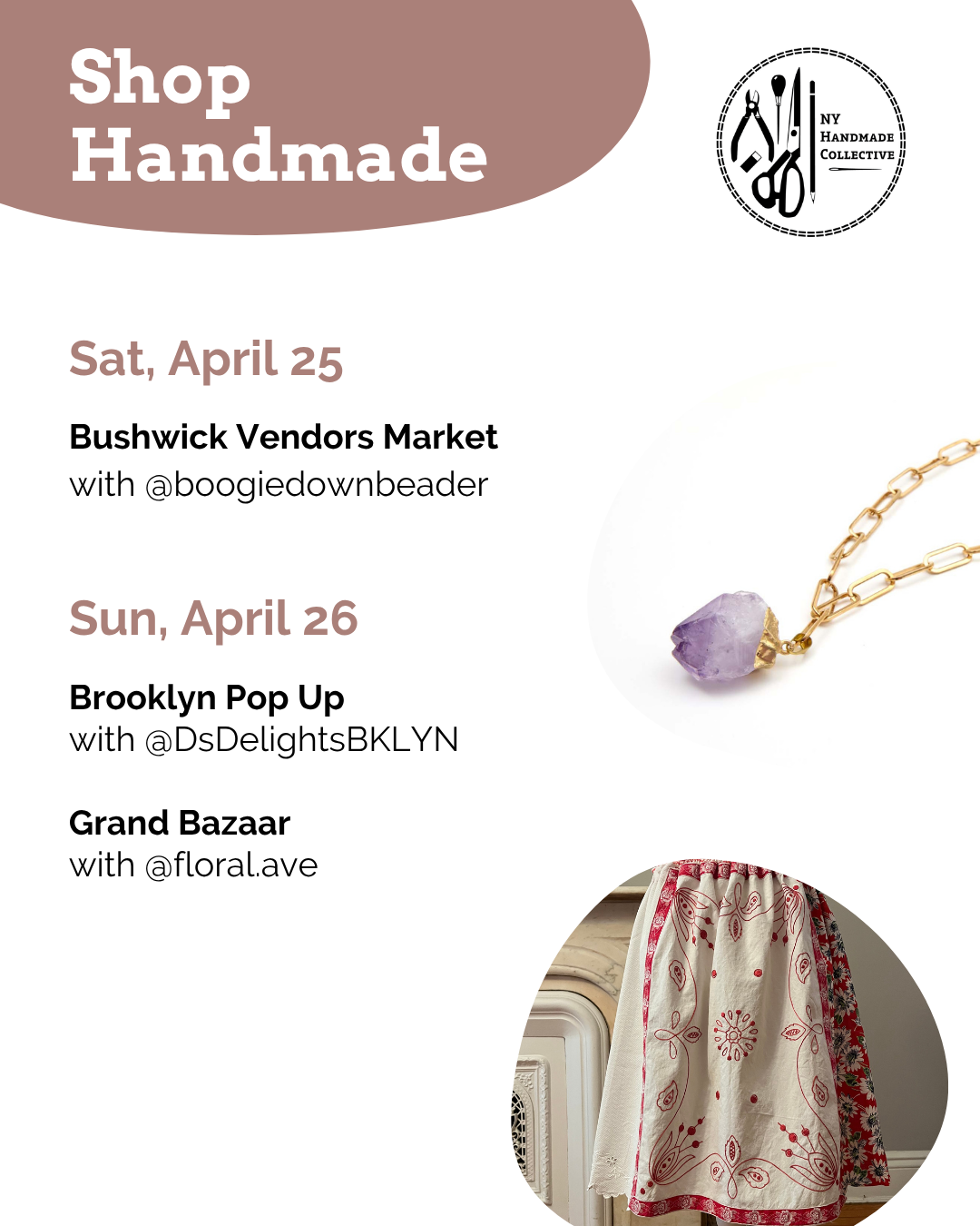 Last weekend of April markets! Find our members work in Brooklyn and Manhattan.